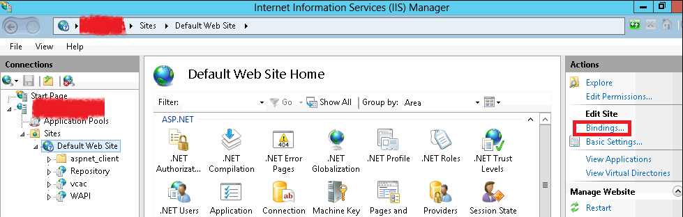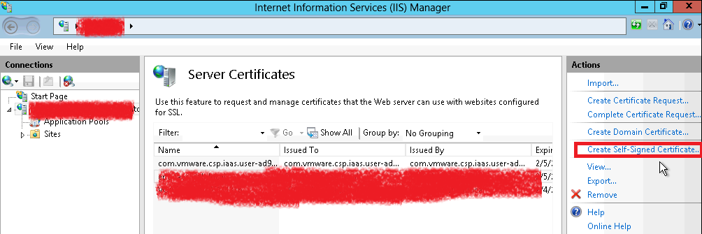 Open IIS Manager on the IaaS VM & browse to Server Certificates