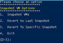 Write-Host -Object 'Snapshot VM Options' -ForegroundColor Yellow