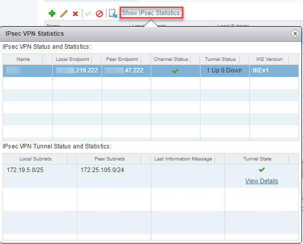 Repeat steps 1-5 on the target side ensuring you reverse the local & peer settings. Once this is done you should be able to click on Show IPSec Statistics on either side to view the Tunnel Status. If everything is configured correctly you should see the Tunnel Status is Up