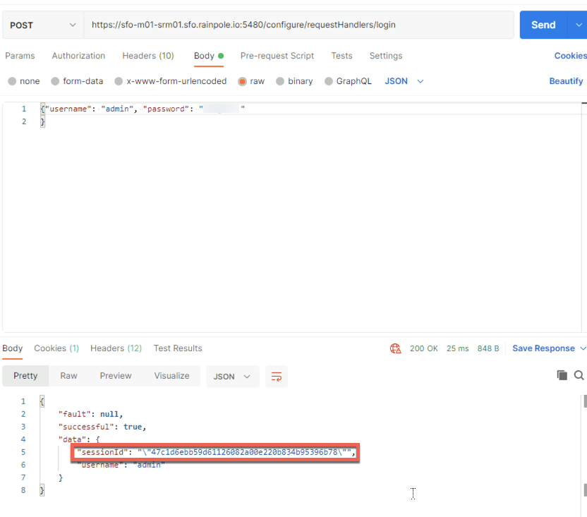 So with the above information you can use an API client like Postman to retrieve a sessionId with the URL & headers like this