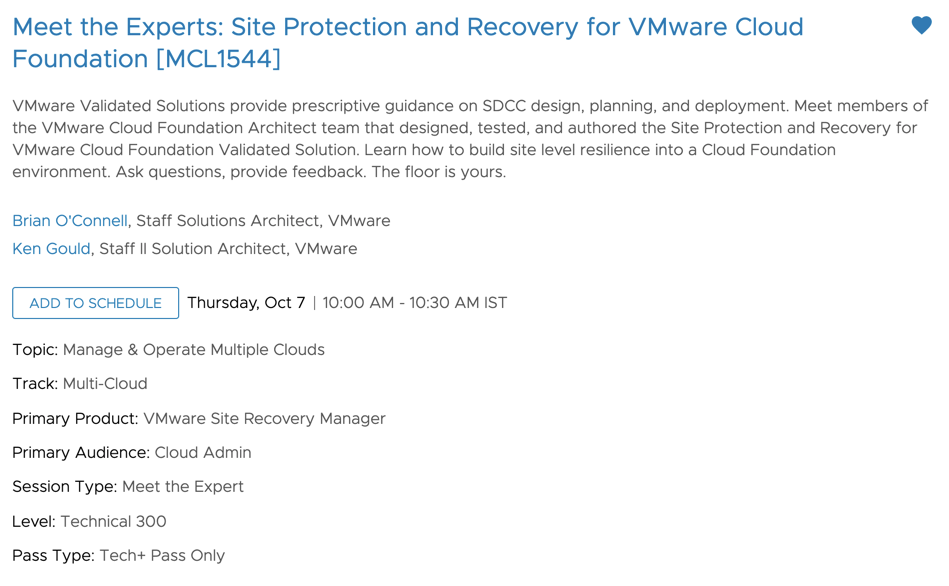 Along with the release of VMware Cloud Foundation 4.3.1, we are excited to announce the general availability of the Site Protection & Disaster Recovery for VMware Cloud Foundation Validated Solution. The solution documentation, intro and other associated collateral can be found on the Cloud Platform Tech Zone here.