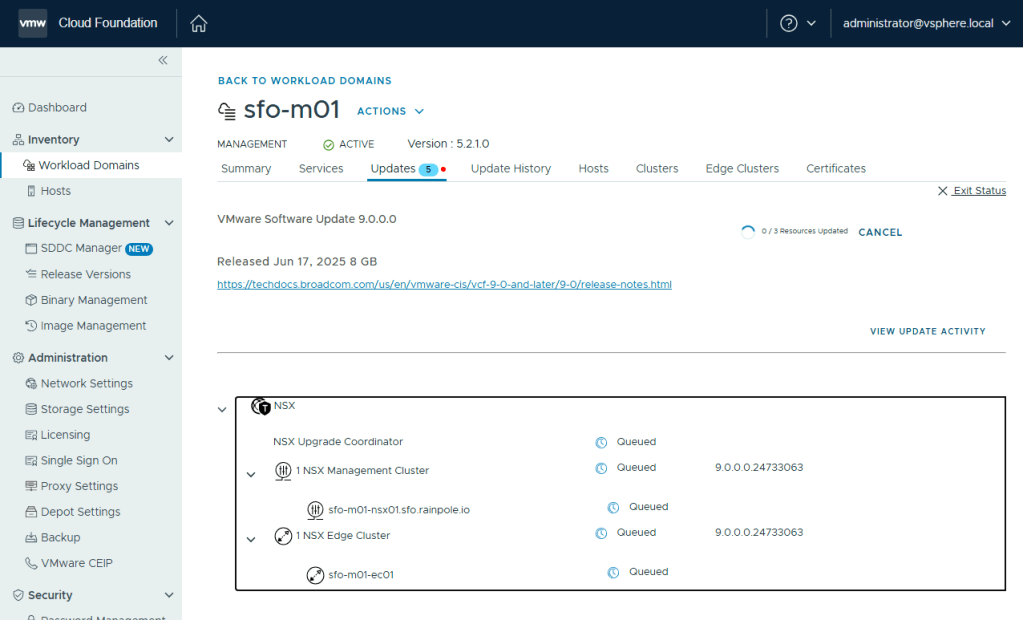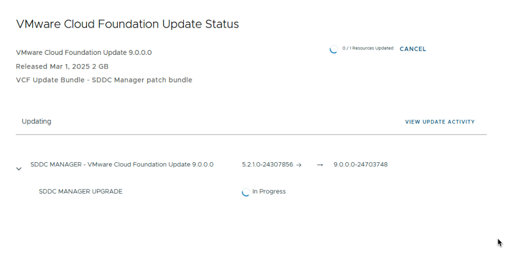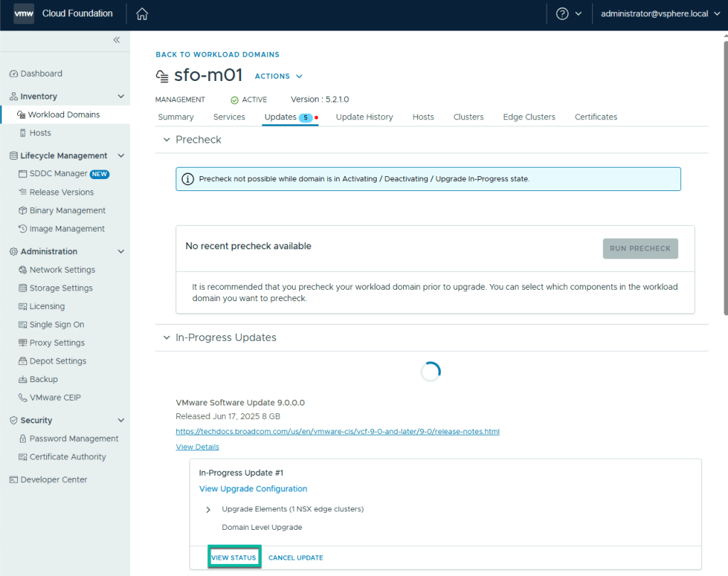 Upgrading VCF 5.2 to 9.0 – Part 2 – Upgrade SDDC Manager