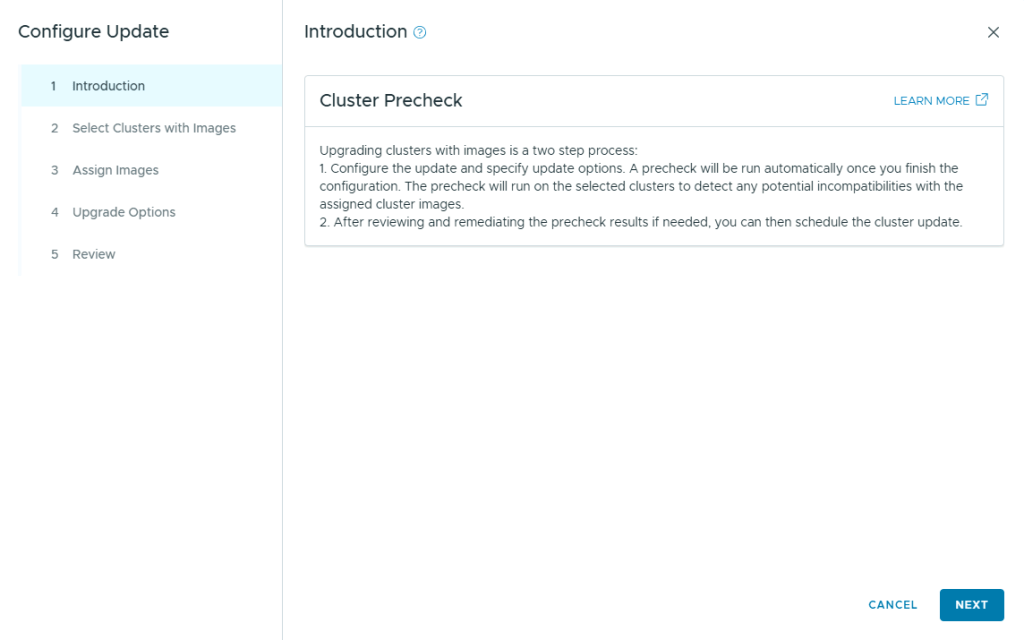 Because the cluster is now managed by vLCM images, you need a vLCM image matching the target version you wish to upgrade to.