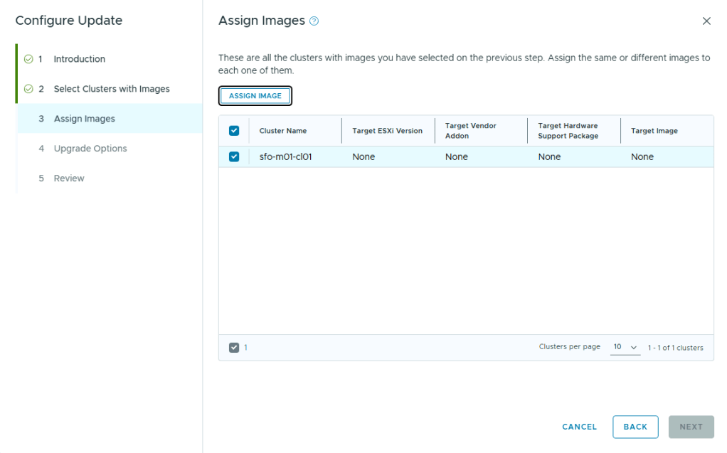 On the Assign Images pane, select the cluster, and click Assign Image.