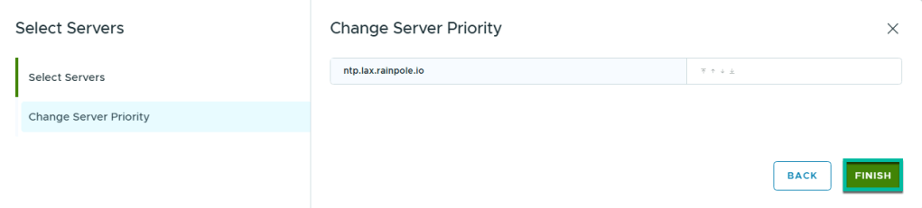 • On the Select Servers screen, select the correct server(s) and click Next. If required, adjust the server priority and click Finish.