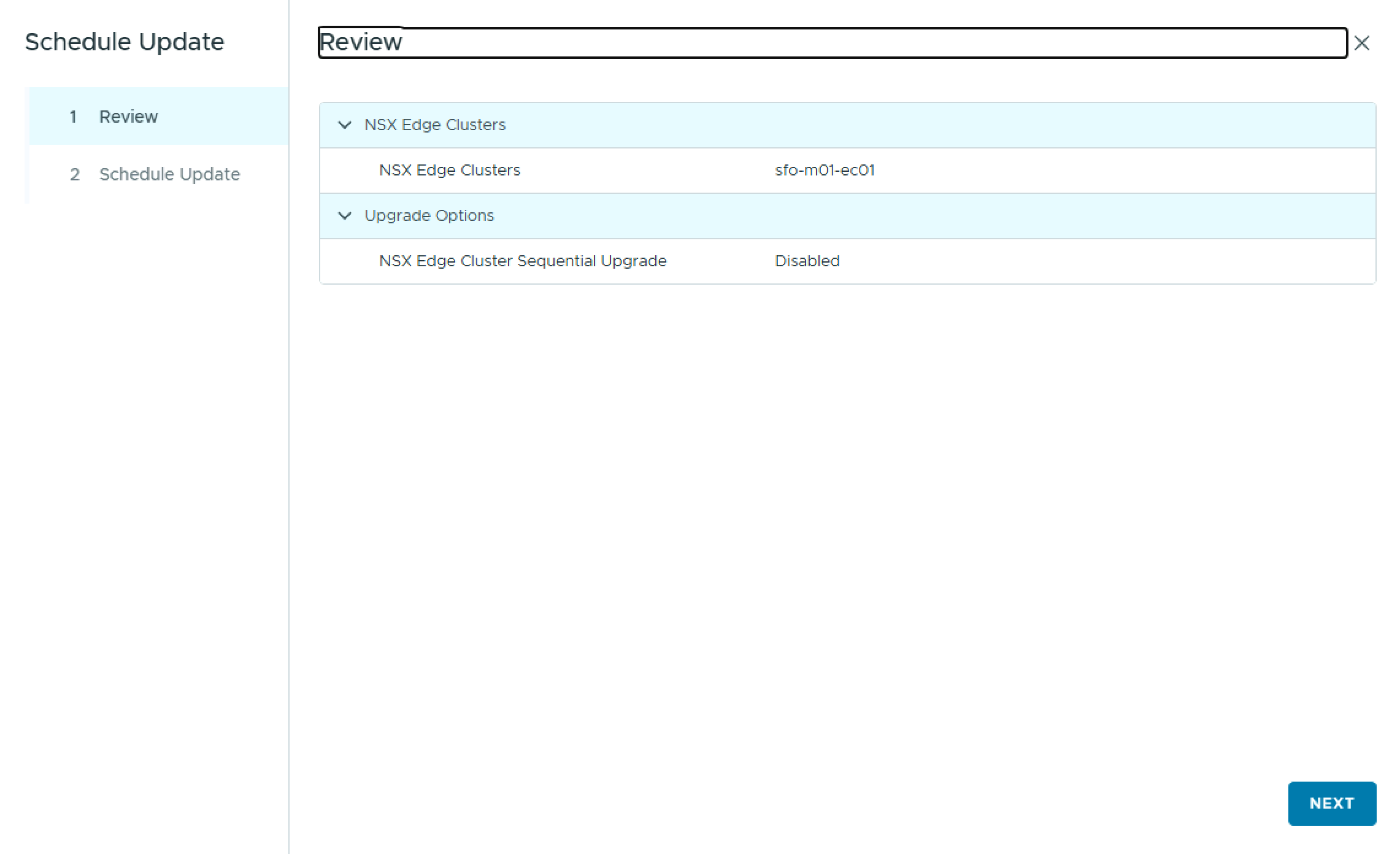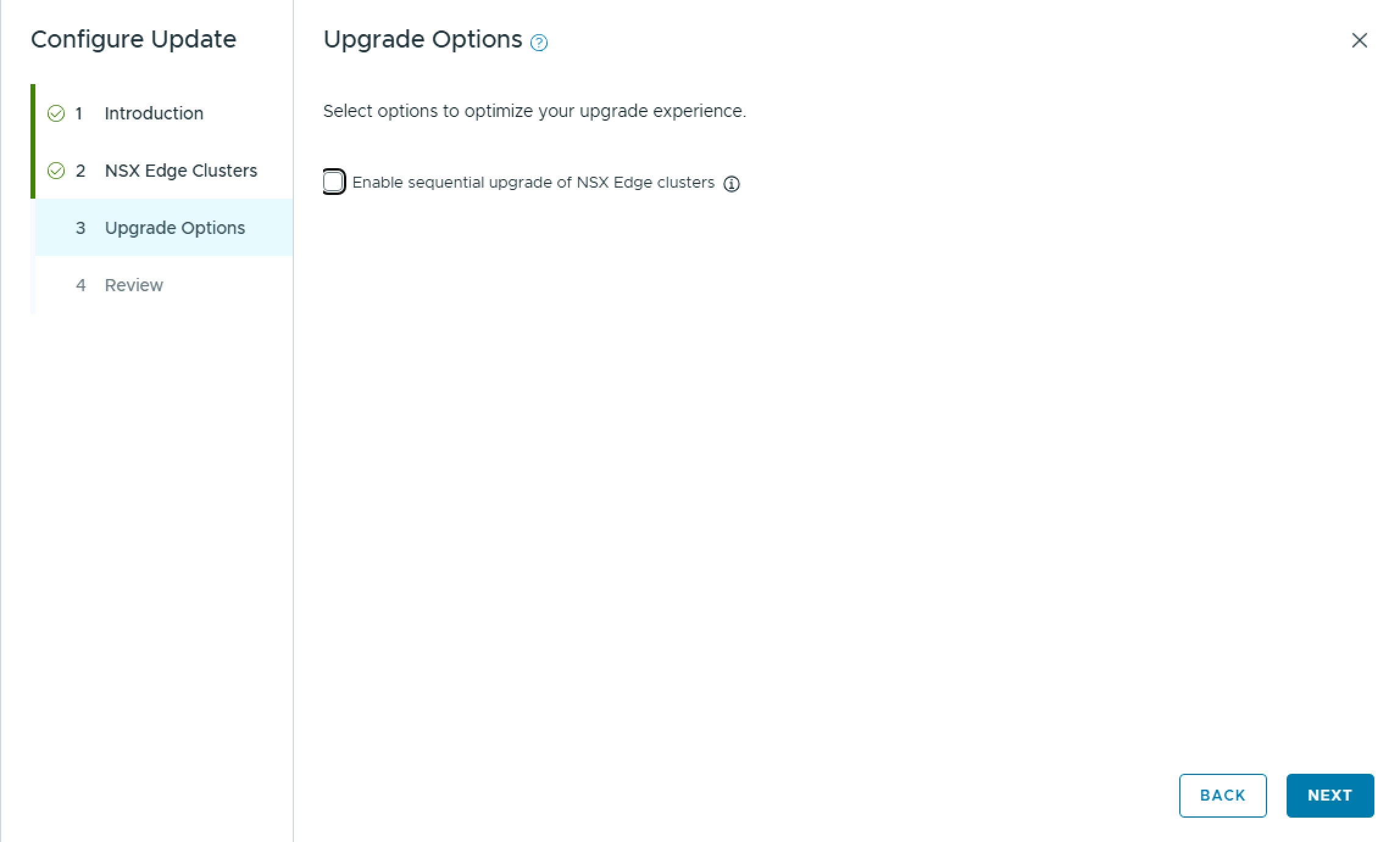 On the Upgrade Options pane, you have the option to Enable sequential upgrade of NSX Edge clusters. Click Next.