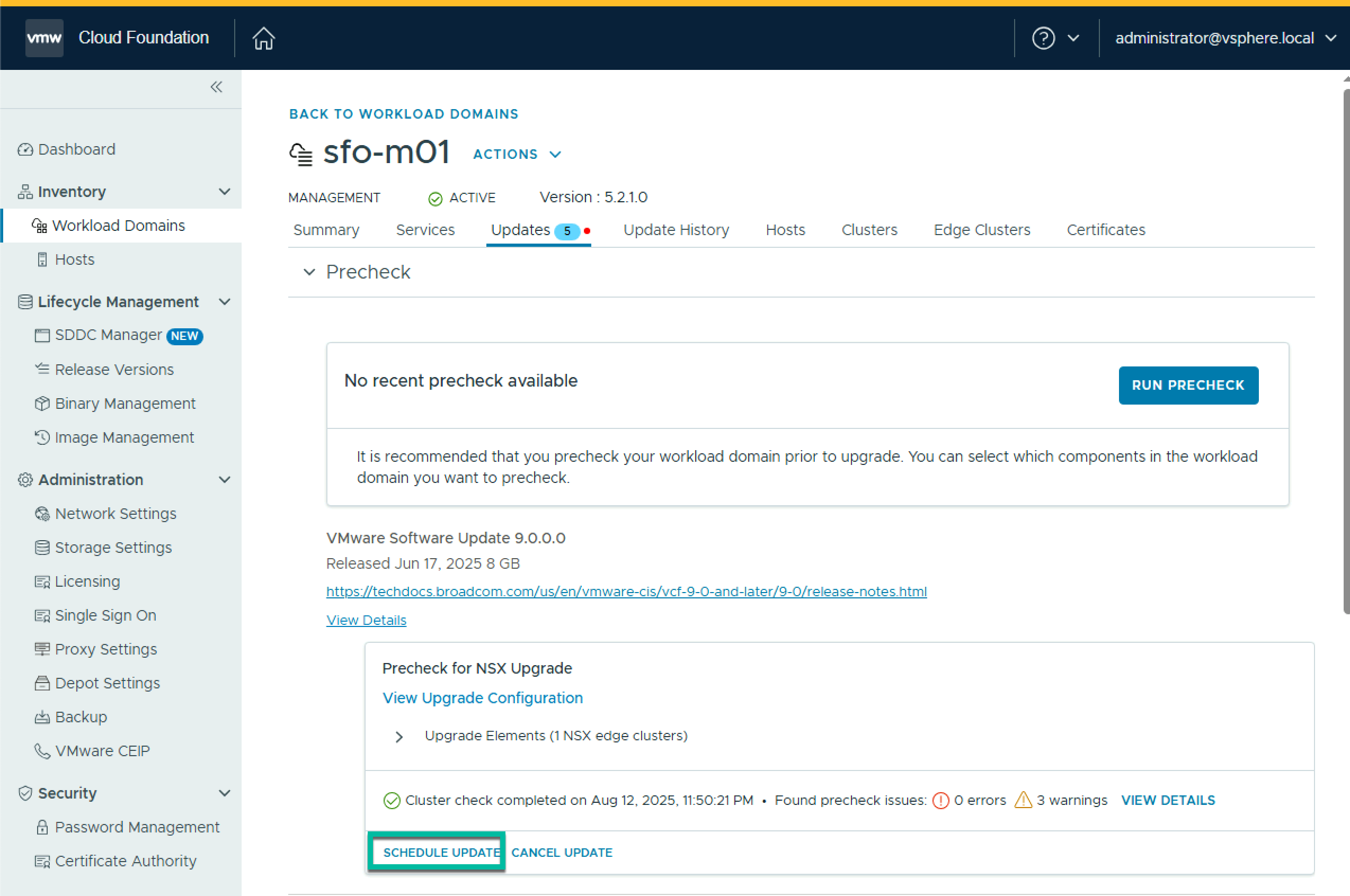 Upgrading VCF 5.2 to 9.0 – Part 2 – Upgrade SDDC Manager
