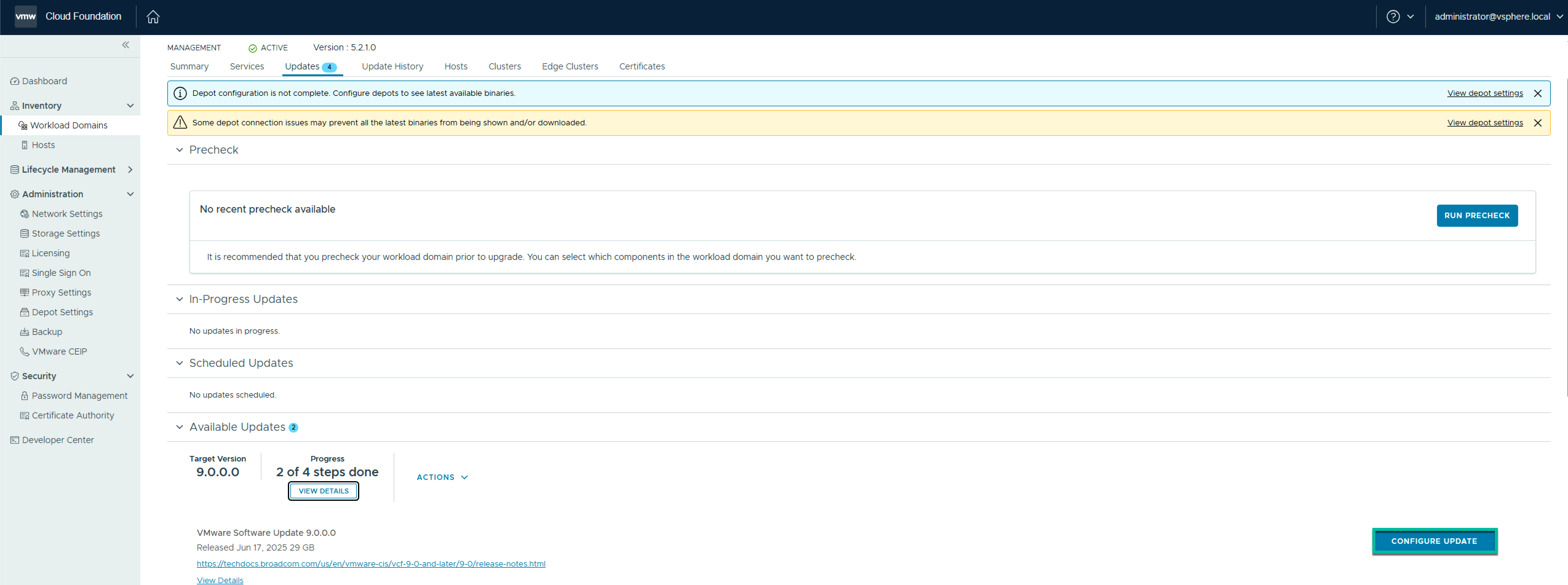Upgrading VCF 5.2 to 9.0 – Part 3 – Update SDDC Manager Depot