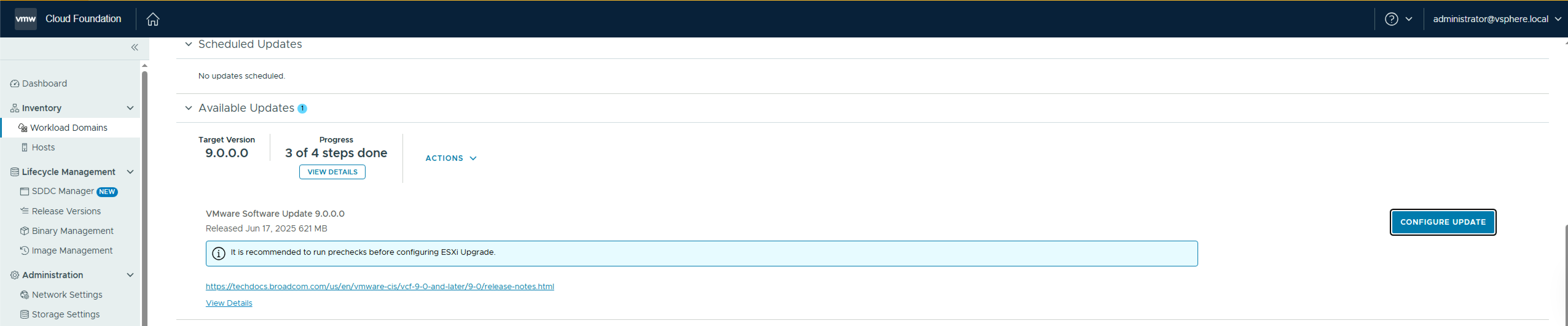 Once the transition process completes, you can proceed with the next step of upgrading the vSphere cluster to vSphere 9.0.